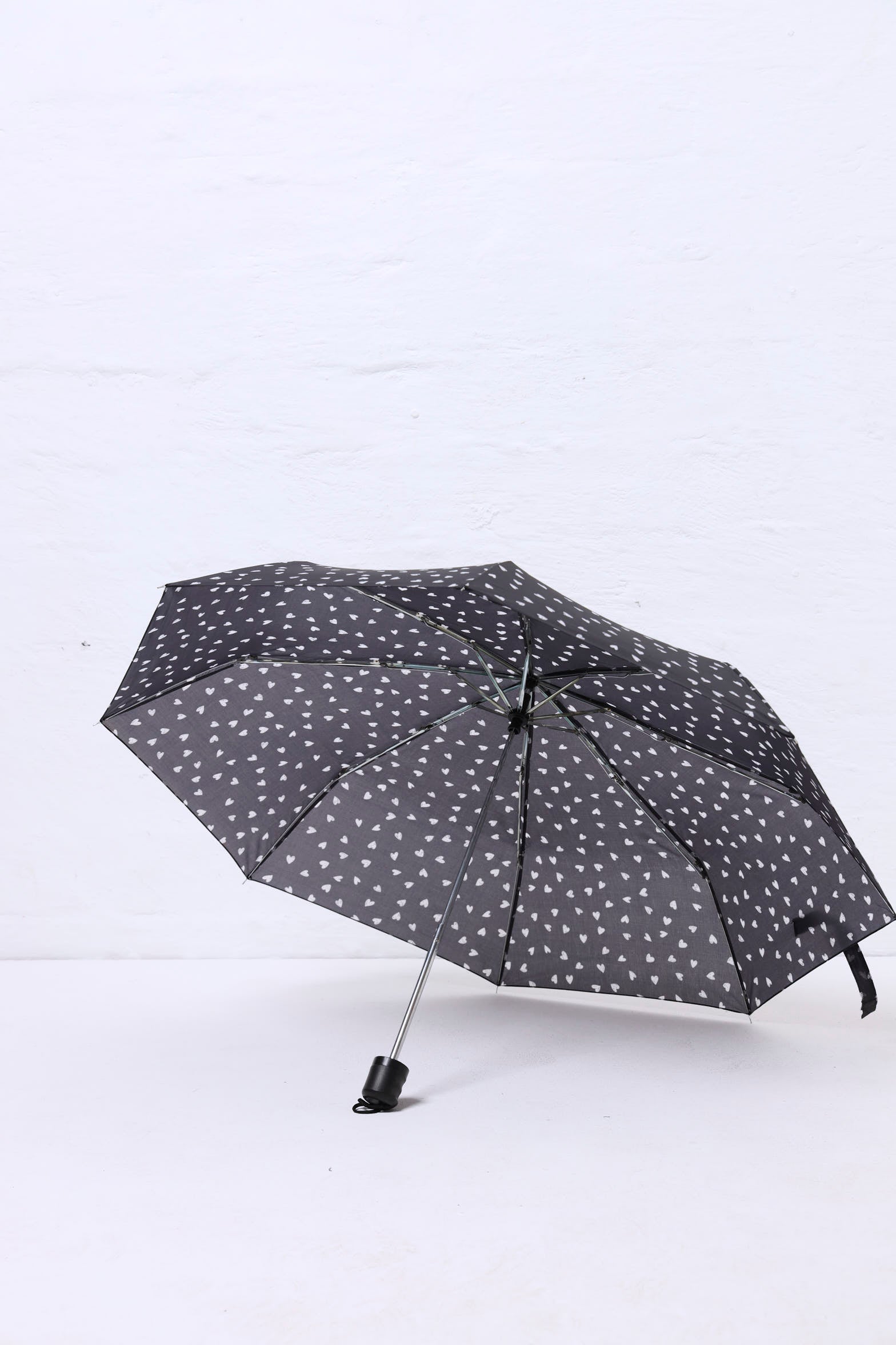 Heart Print Umbrella - Black