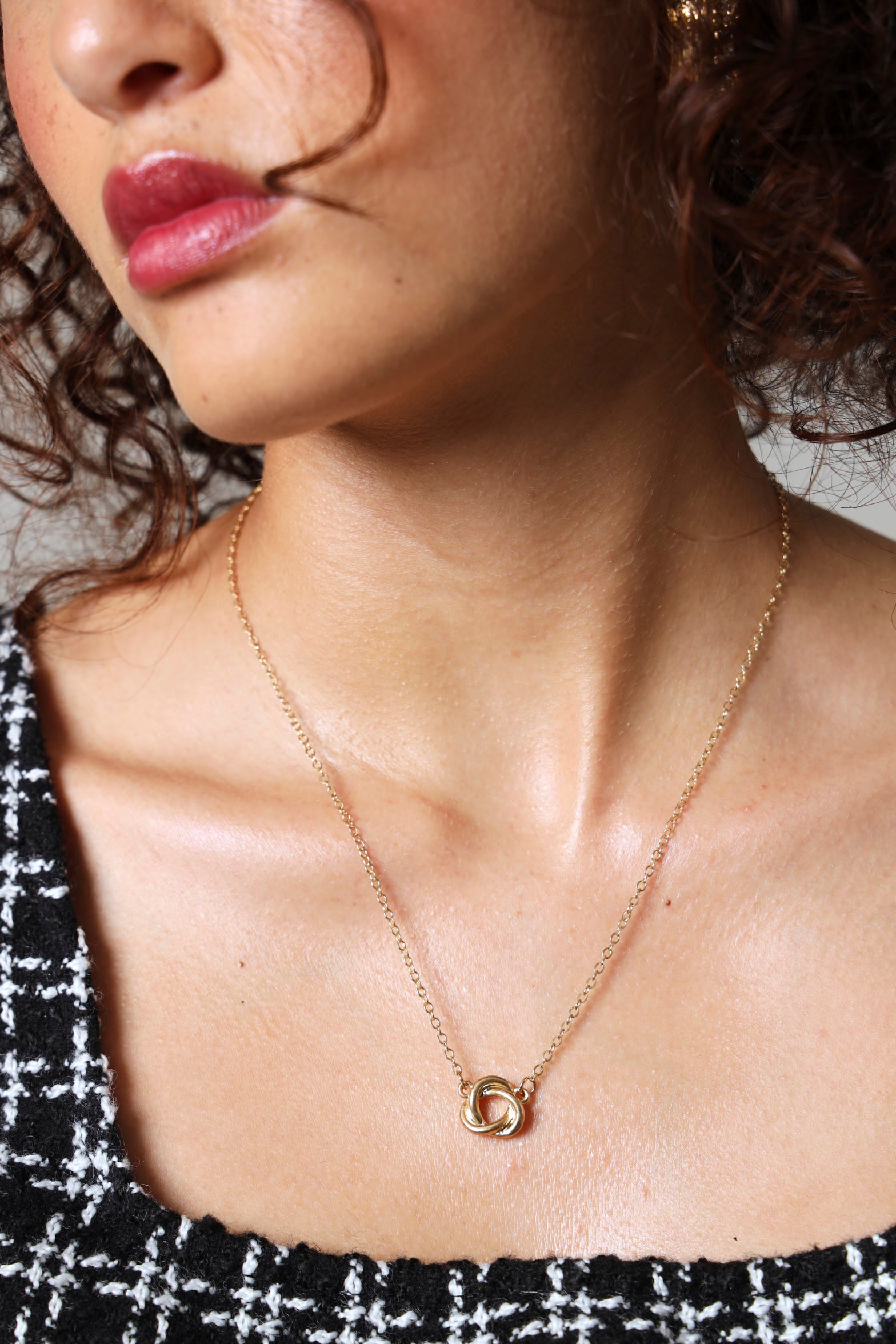 Make a statement with this exquisite gold Knot Pendant Necklace. Its refined design captures timeless sophistication while the symbolic knot detail adds meaningful depth to your jewellery collection. A versatile essential that effortlessly elevates any look.