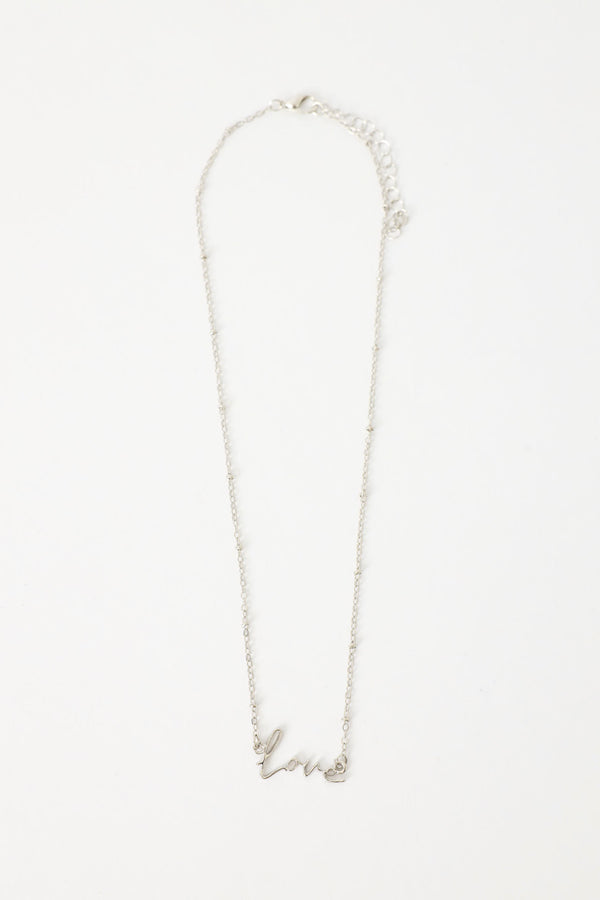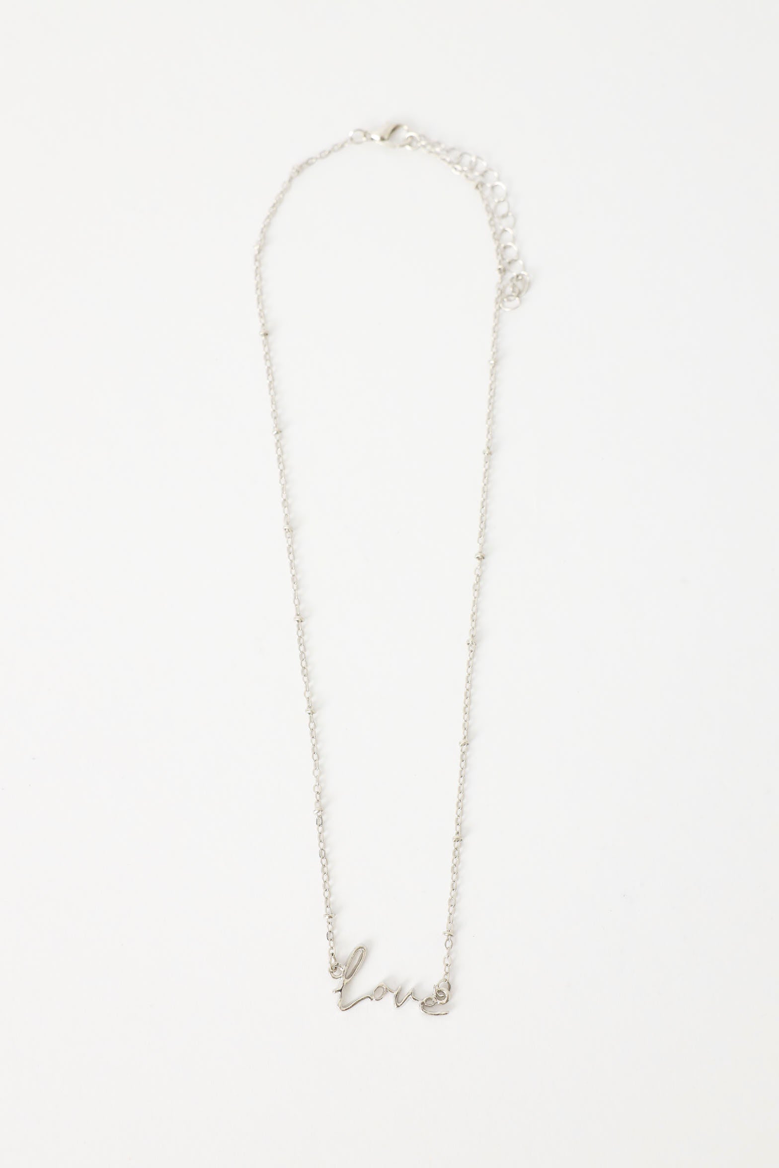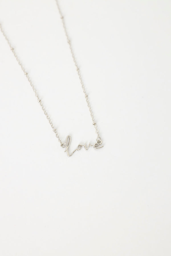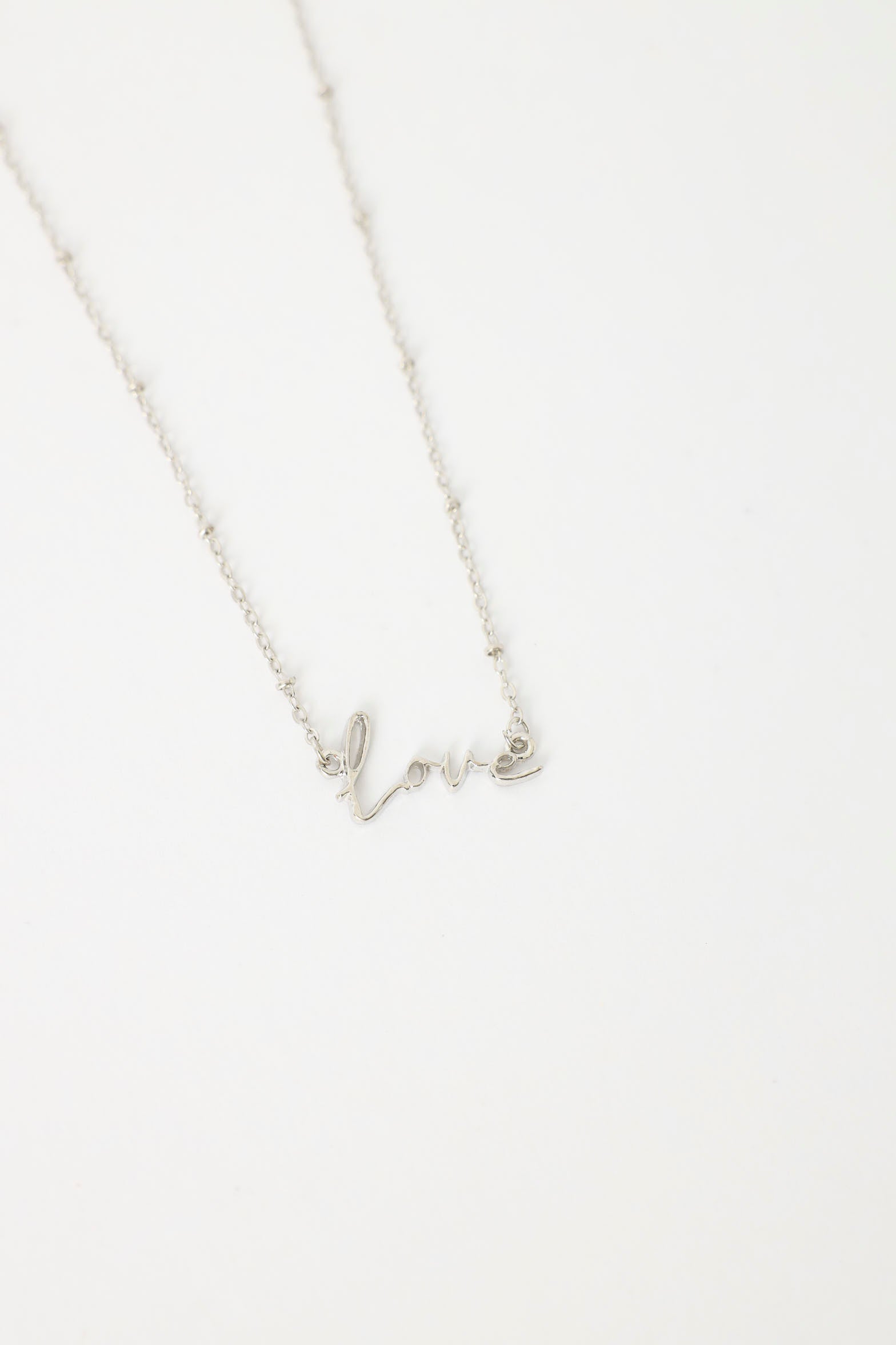 Delicate silver necklace featuring an elegant love pendant that captures timeless romance. Crafted from quality silver, this piece combines understated sophistication with meaningful symbolism, making it perfect for everyday wear or as a heartfelt gift. The refined design complements any style while serving as a subtle reminder of what matters most. A versatile accessory that transitions effortlessly from casual to formal occasions.