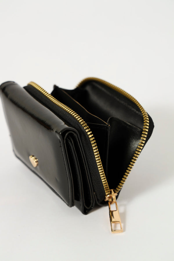 Carry love with you everywhere in this adorable black wallet featuring charming heart trim and a secure metal clasp. The sweet heart detailing adds a touch of whimsy to a practical everyday essential, while the sturdy metal clasp keeps your cash and cards safe and sound. The sleek black exterior is timeless and versatile, pairing effortlessly with any bag or style. Compact yet spacious, this wallet organizes your essentials without the bulk, making it perfect for anyone who values both function and fashion. The quality construction means it'll be your trusty companion through countless shopping trips and adventures. Whether you're treating yourself or gifting it to someone special, this wallet proves that the smallest accessories can bring the biggest smile. Keep your valuables close and your style closer with this delightful little essential.