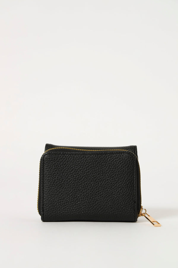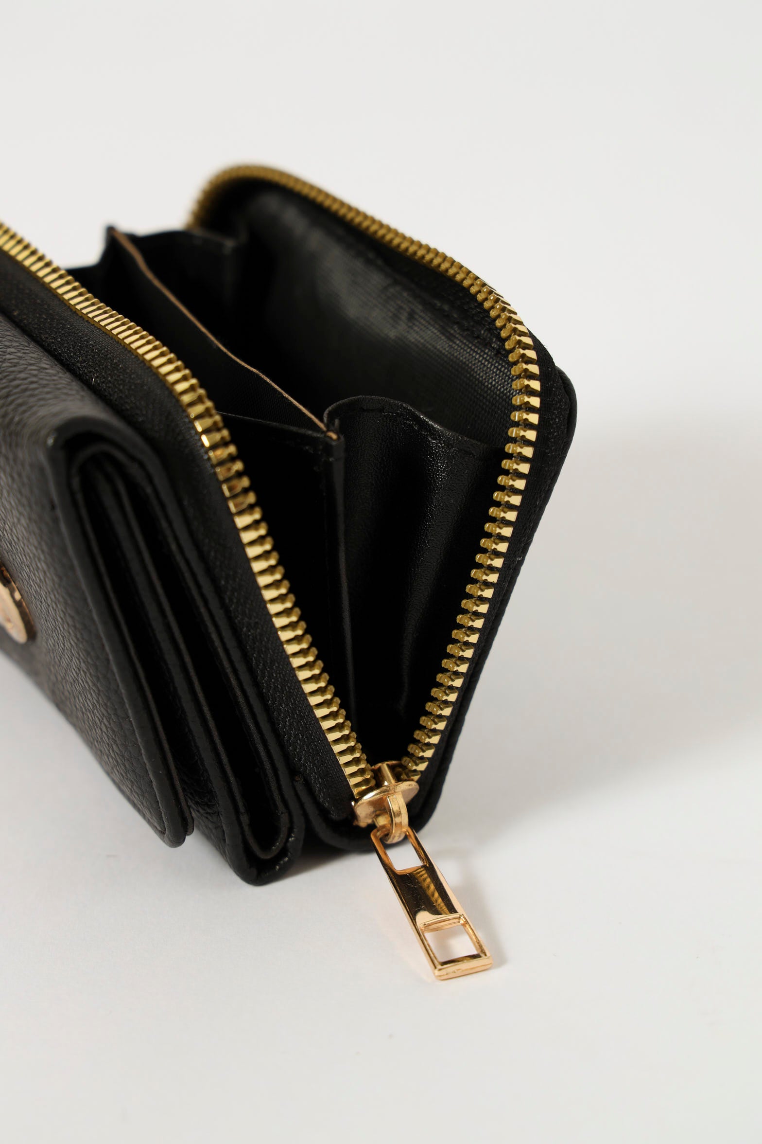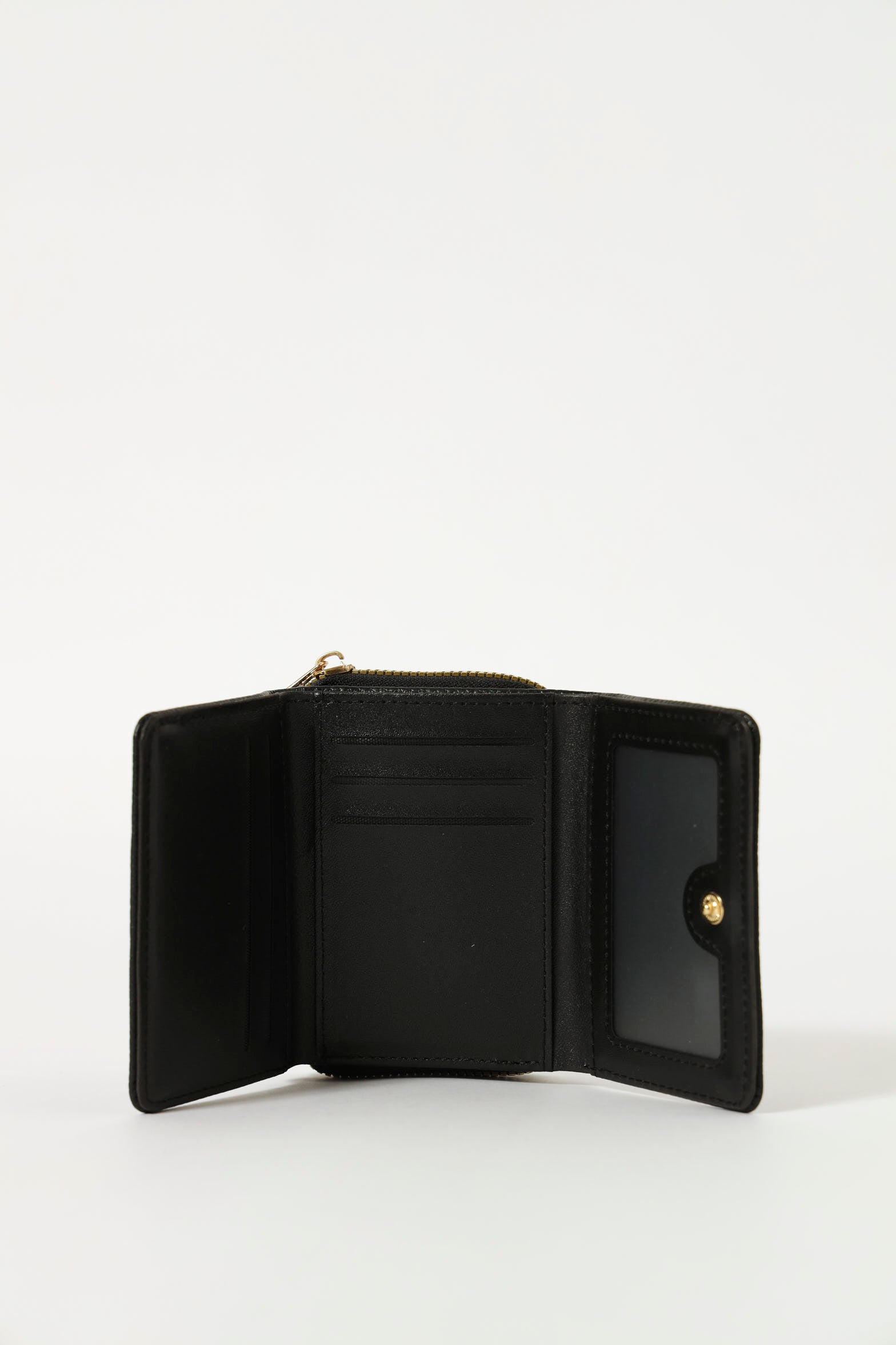 Carry your essentials in style with this sleek black wallet featuring a distinctive metal logo compartment. Multiple card slots keep your cards organized and easy to access, while the compact design slides effortlessly into your pocket or bag. The metal logo detail adds a touch of personality to an everyday essential. Perfect for anyone who refuses to compromise on both function and flair.