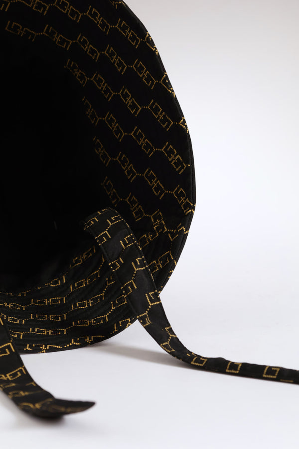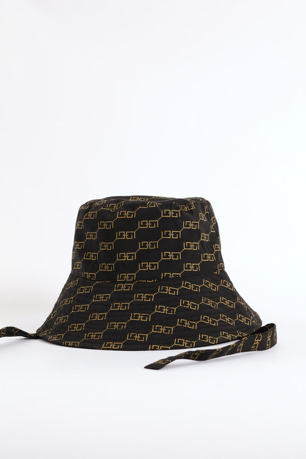 New Monogram Thin Tie Detail Bucket Hat - Black