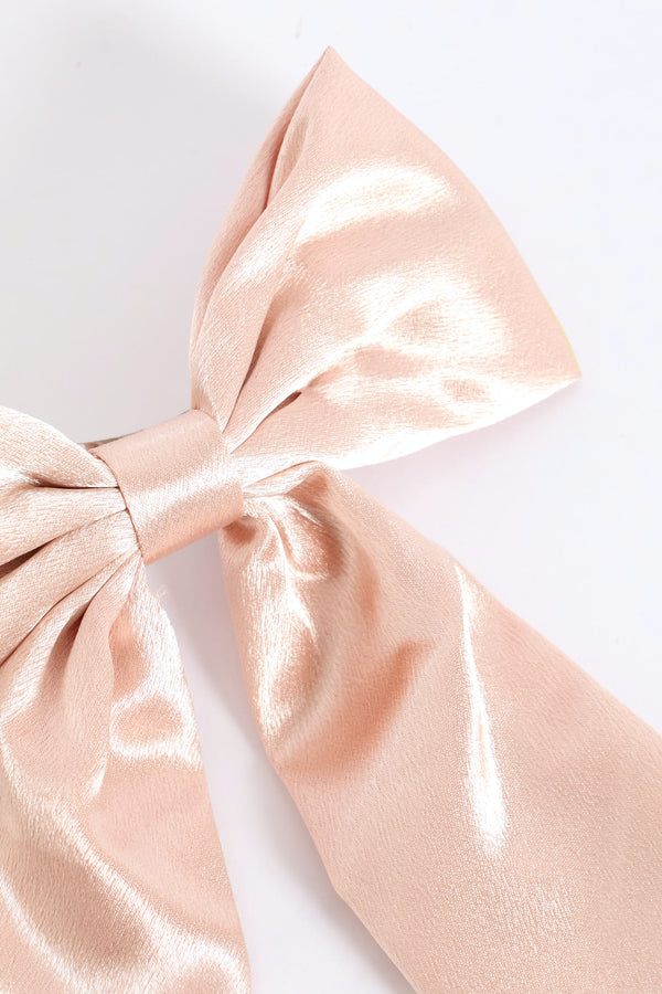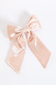 Elevate your hair game with this luxe satin bow clip in champagne. The silky-smooth finish catches the light beautifully, adding instant sophistication to any hairstyle—whether you're going for polished elegance or playful charm. Perfect for securing updos, half-ups, or just adding that extra touch of sparkle to your everyday look. A timeless accessory that works as hard as you do.