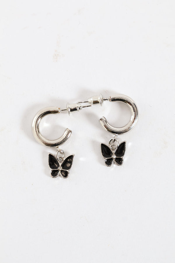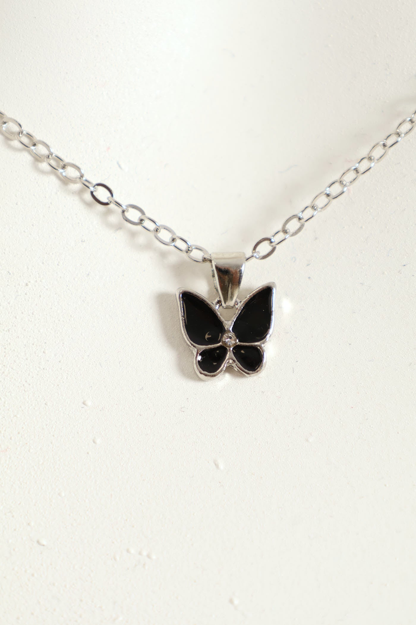 Flutter into fun with the Updated Epoxy Butterfly and Matching Earrings in Black. These playful accessories add a whimsical touch with sleek epoxy butterflies that catch the eye, making them perfect for brightening up any look with a dash of charm and personality.