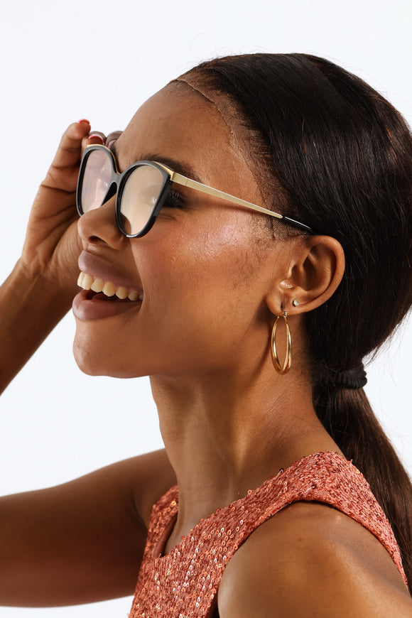 Cat Eye Blue Block Len Glasses - Black/Gold