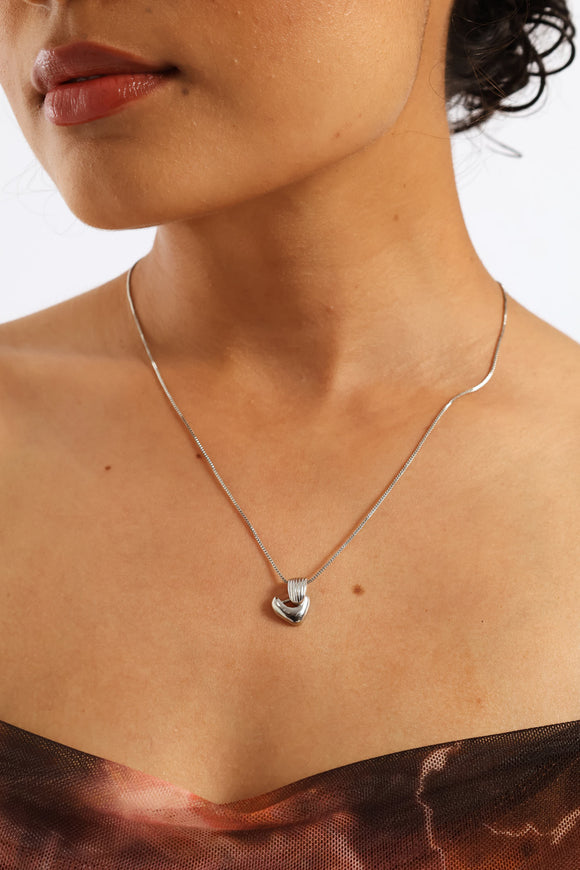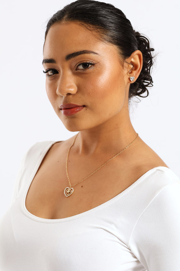 Tripple Layer Diamante Heart Pendant Necklace & Matching Earrings - Gold