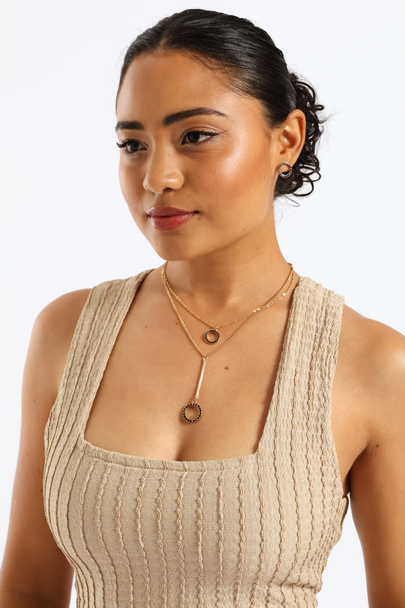 Diamante Loop Pendant Necklace & Matching Earrings - Gold