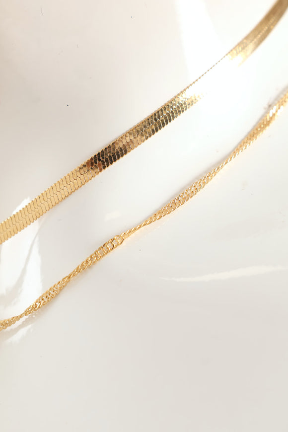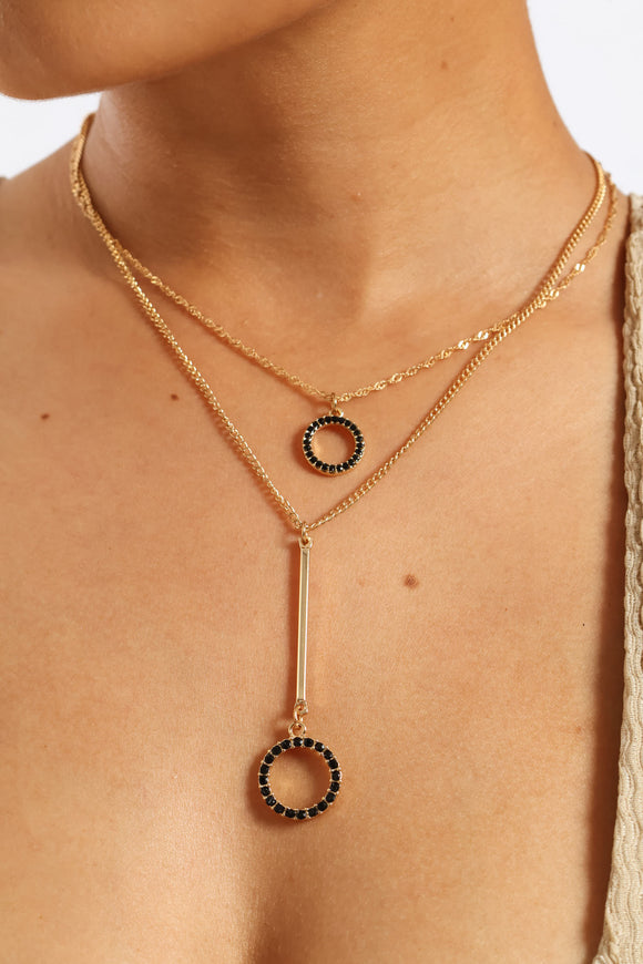 2 Layer Diamante Disc Necklace & Matching Earrings - Gold