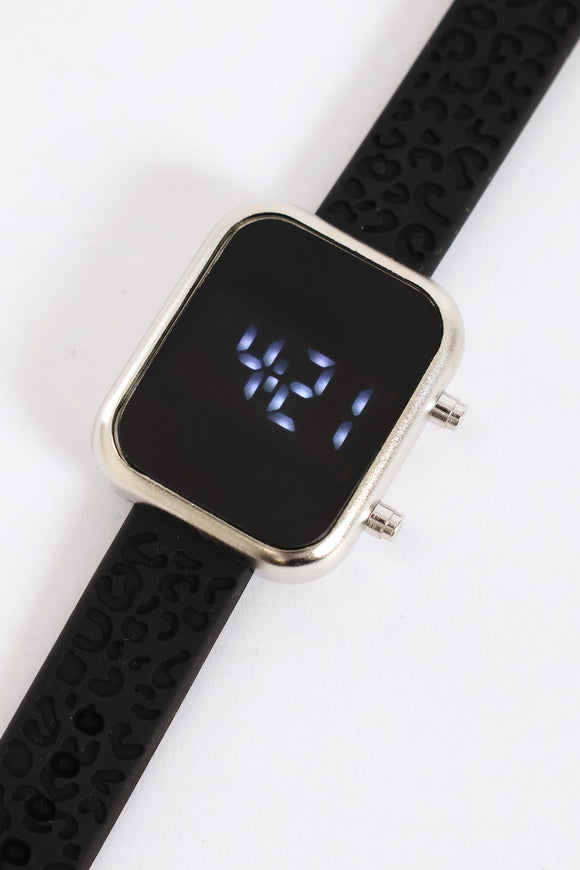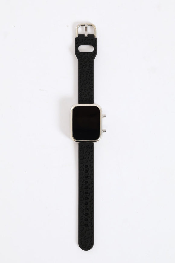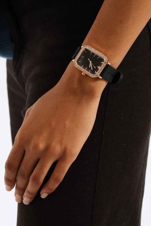 Soft Square Diamante Dial Rubber Strap Watch - Black