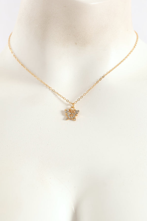 2 Layer Bow Necklace And Matching Earrings - Gold