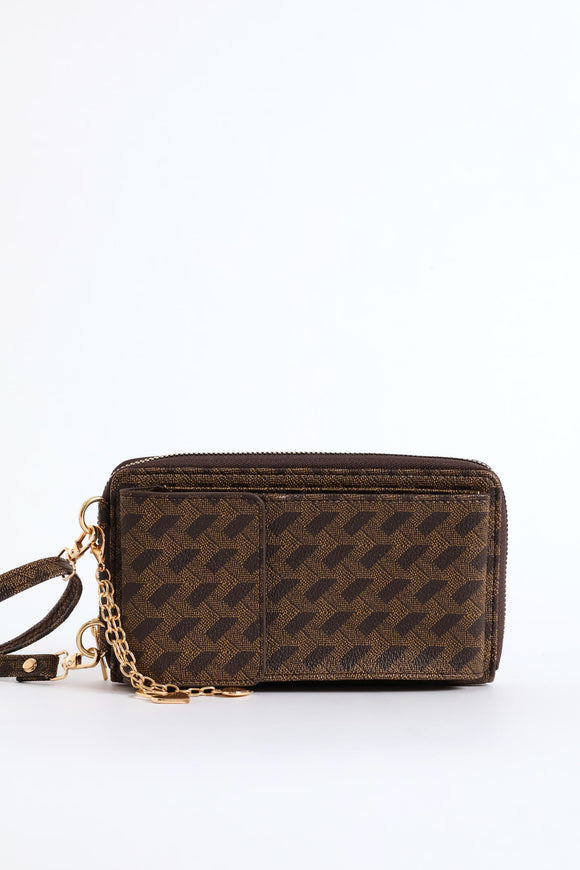 Heart Charm Monogram Cellphone Satchel Bag - Brown