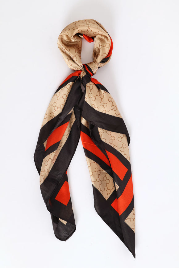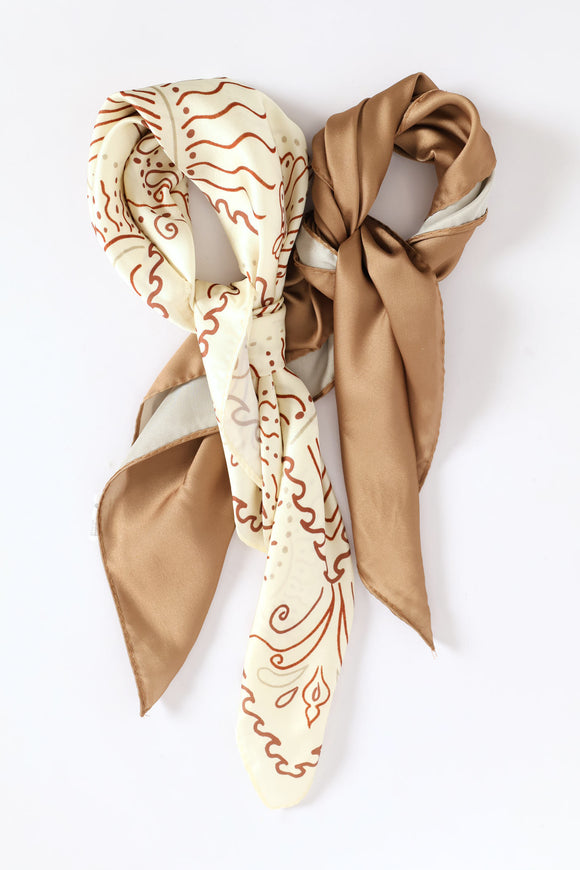 2 Pack Shell Print & Colour Satin Scarves - Multi