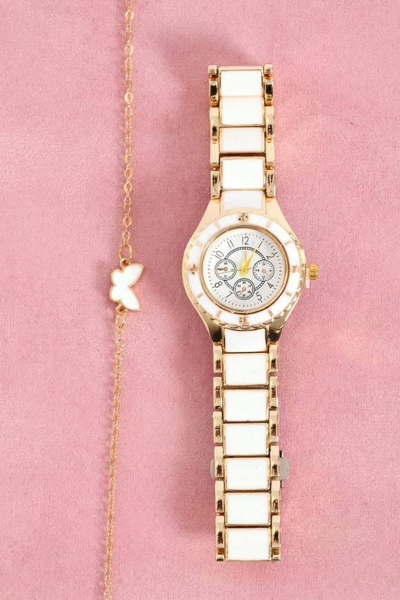 Epoxy Linked Watch & Epoxy Butterfly Bracelet - White