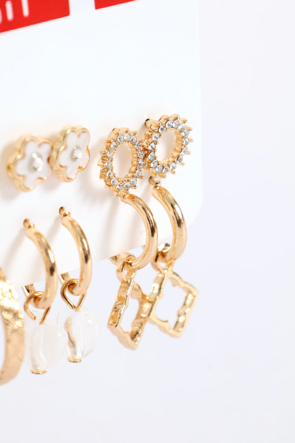 6 Pack Novelty Studs & Hoop Earrings - Gold