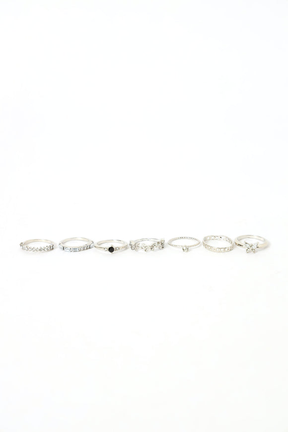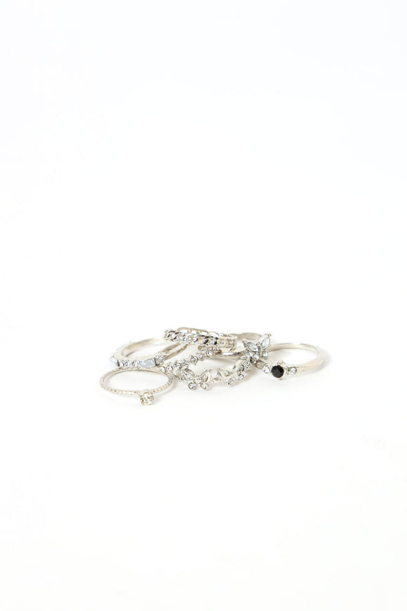 7 Pack Diamante Butterfly & Eternity Rings - Silver