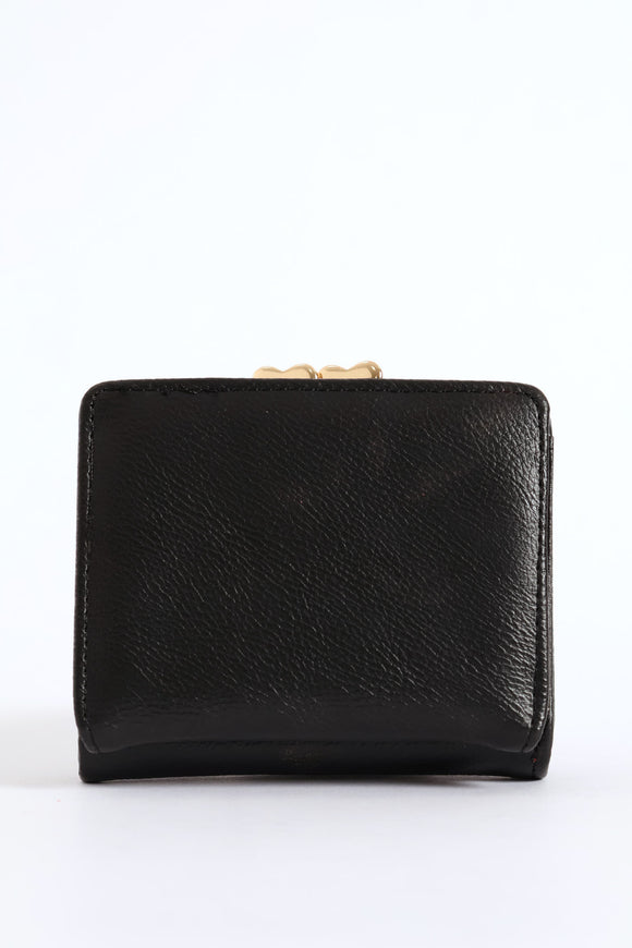 Charm Knot Detail Flapover Wallet - Black