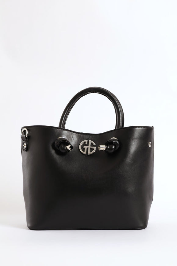 Front Knot Detail Metal Logo Tote Bag - Black/Silver