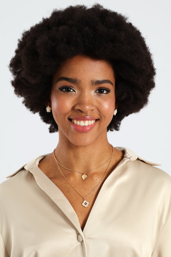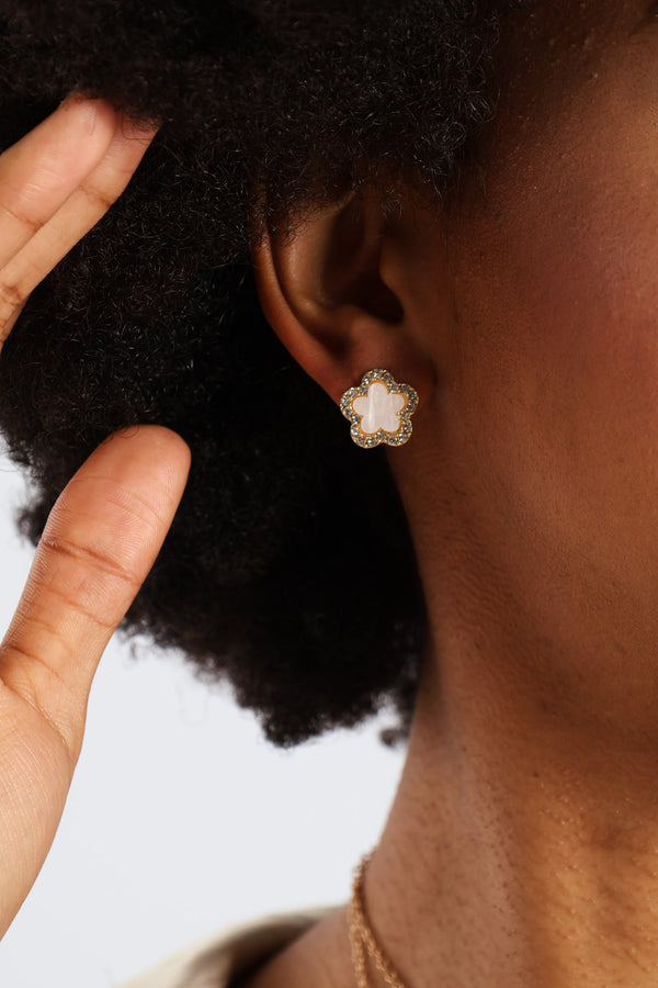2 Layer Epoxy & Diamante Flower Necklace & Epoxy Flower Earrings - Gold
