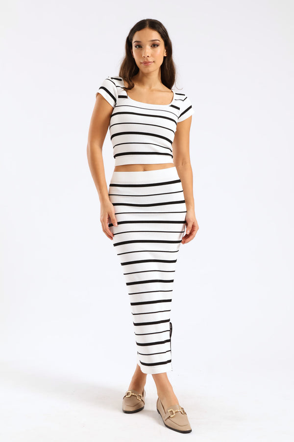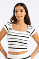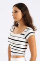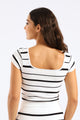 Cap Sleeve Stripe Seamless Tee - Black/White