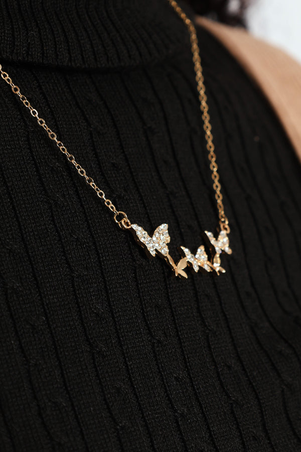 Fly into the spotlight with our dazzling Cluster Diamante Butterfly Pendant And Matching Earrings! The gold accents add a touch of elegance to any outfit, while the intricate butterfly design is sure to catch some attention. Truly a unique and playful addition to your jewelry collection. (Limited quantity available, so grab yours now!)