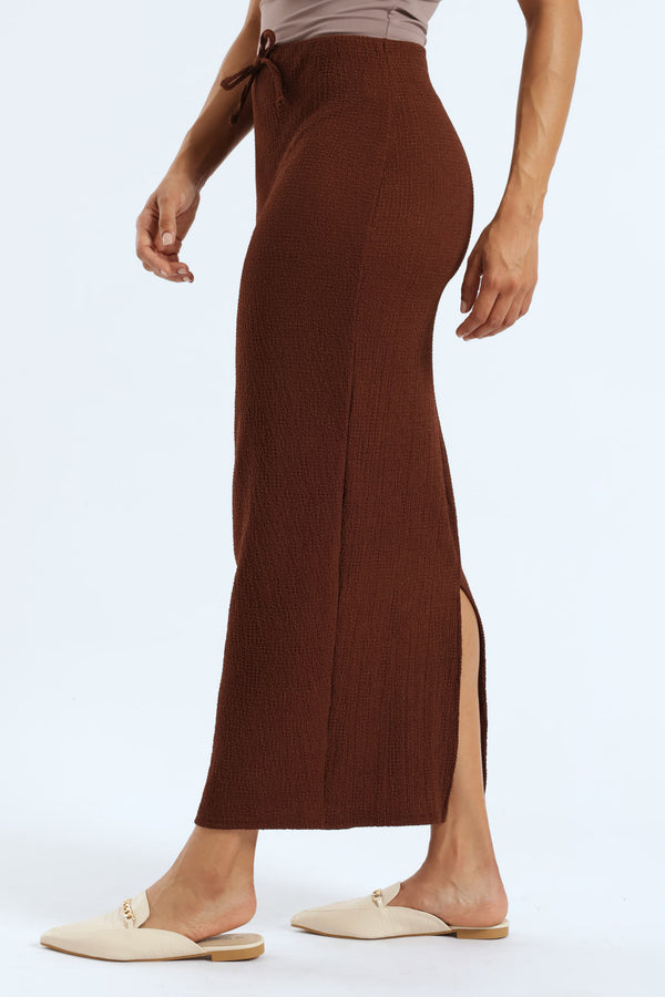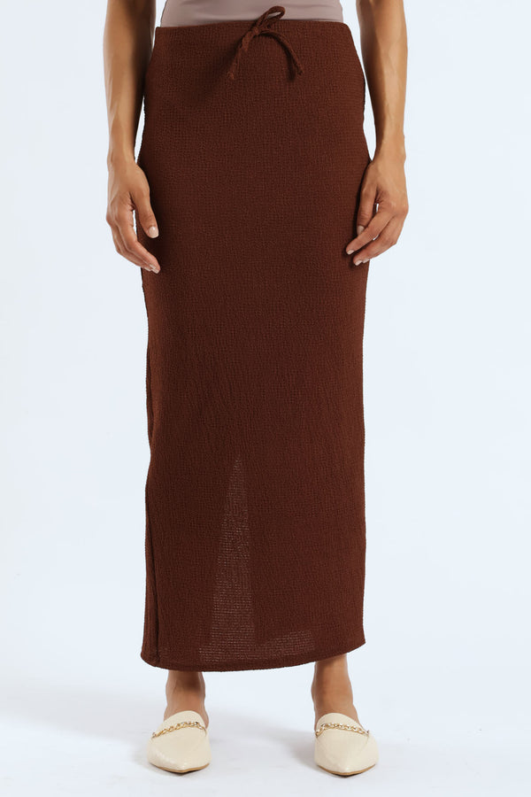 Crinkle Knit Tie Front Maxi Skirt - Chocolate