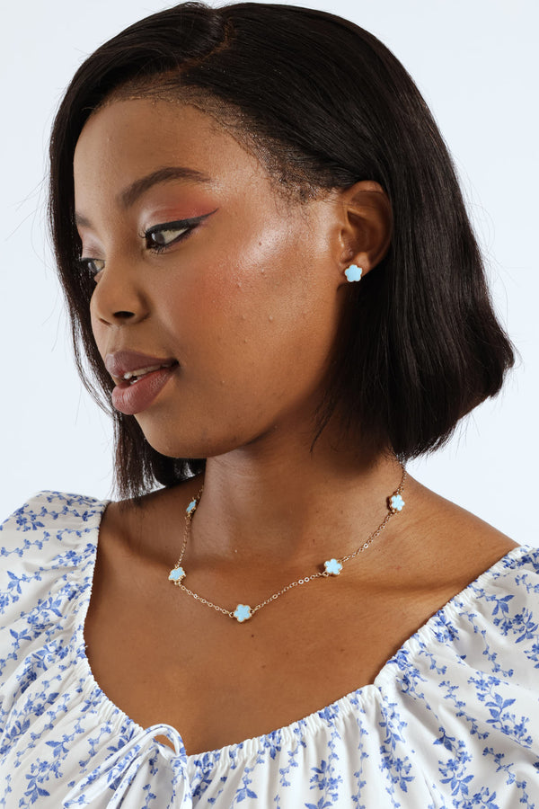 Epoxy Flower Necklace & Matching Earrings - Blue