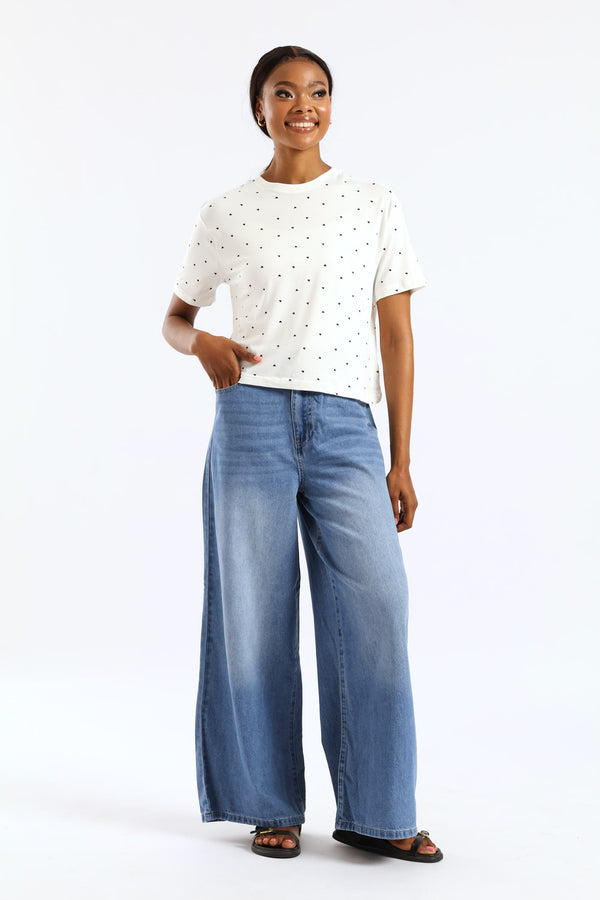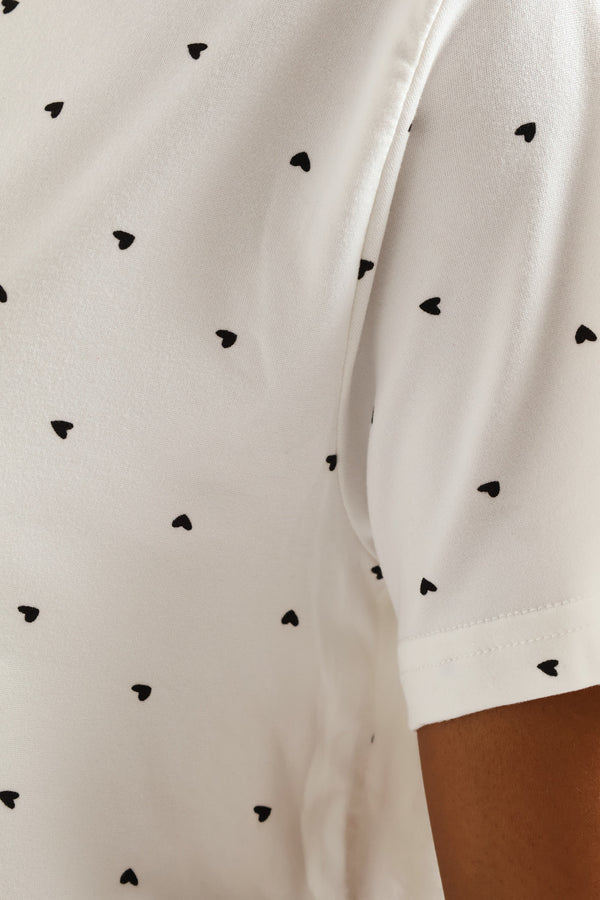 Show off your playful side with the Heart Tee in White and Black. This fun tee features a bold heart design that adds a touch of whimsy to your everyday style. Comfortable and cute, it’s perfect for spreading good vibes wherever you go.