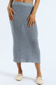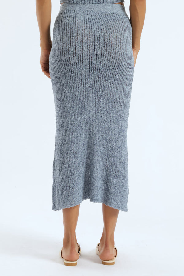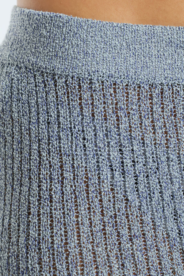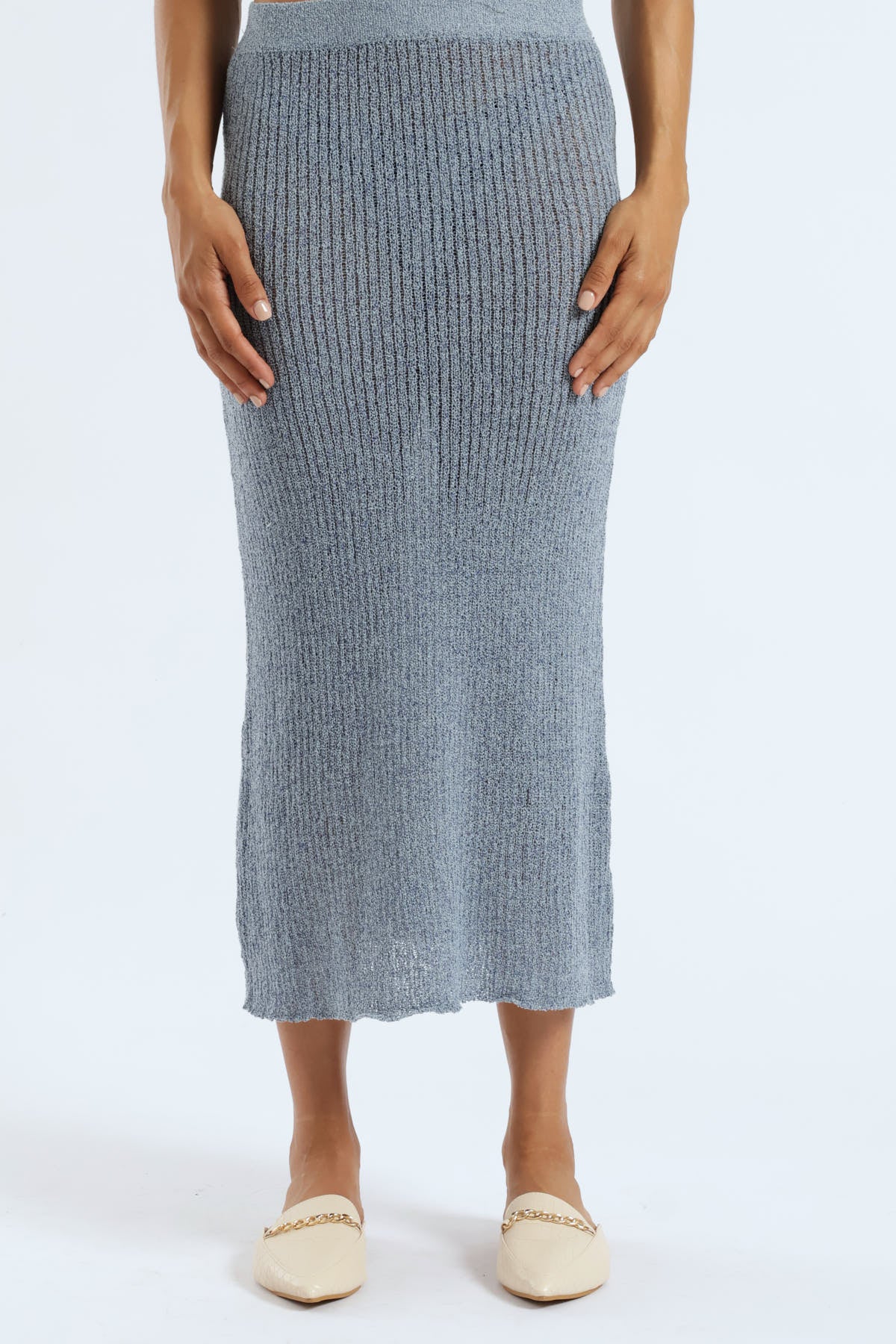 Elevate your wardrobe with the Melange Knitwear Flare Midi Skirt in Blue. Crafted from soft, comfortable knitwear, this skirt offers a flattering flare silhouette that gracefully enhances your figure. Its midi length adds an elegant touch, making it versatile for both professional settings and refined casual occasions. The subtle melange texture enriches the design with understated sophistication, perfect for a polished, modern look.