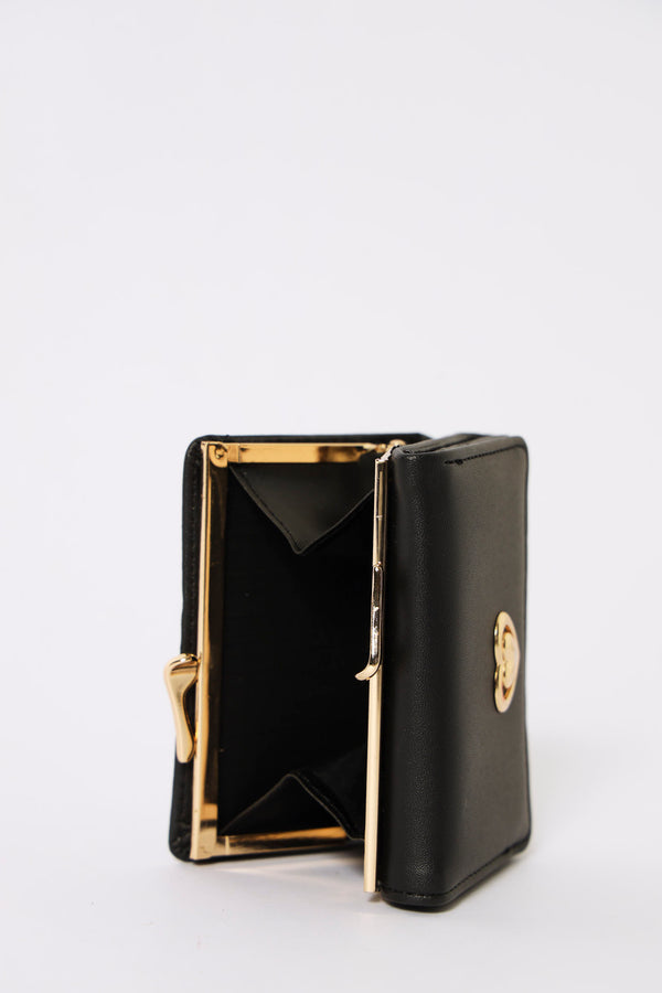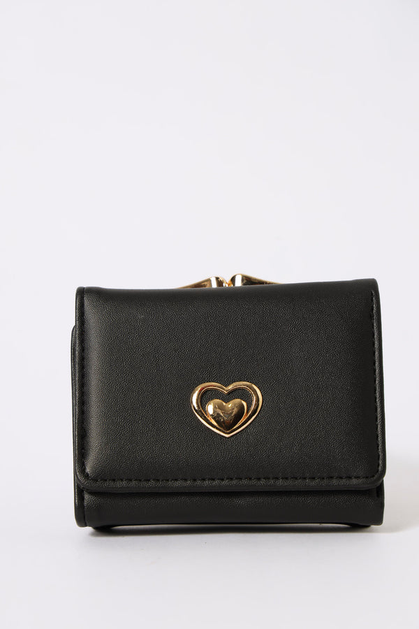 Carry love with you everywhere in this adorable black wallet featuring charming heart trim and a secure metal clasp. The sweet heart detailing adds a touch of whimsy to a practical everyday essential, while the sturdy metal clasp keeps your cash and cards safe and sound. The sleek black exterior is timeless and versatile, pairing effortlessly with any bag or style. Compact yet spacious, this wallet organizes your essentials without the bulk, making it perfect for anyone who values both function and fashion. The quality construction means it'll be your trusty companion through countless shopping trips and adventures. Whether you're treating yourself or gifting it to someone special, this wallet proves that the smallest accessories can bring the biggest smile. Keep your valuables close and your style closer with this delightful little essential.