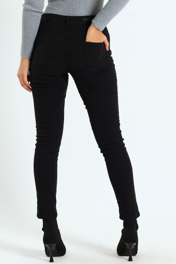 Get ready to elevate your style with our Regular Rise Push-Up Skinny Jeans in classic black! Not only do they hug your curves in all the right places, they also give you a sexy boost and can be easily dressed up or down. Perfect for any occasion!