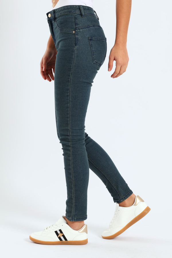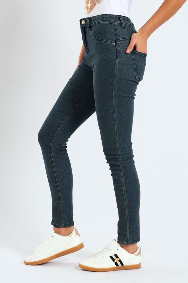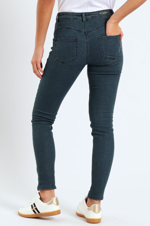 Elevate your style with the Regular Rise Push-Up Skinny in Tea Stain. Designed to enhance your silhouette, these jeans offer a flattering push-up effect and a comfortable regular rise fit. The unique tea stain wash adds a subtle, vintage-inspired touch, making them perfect for both casual and dressier looks. Experience confidence and comfort in every step with this versatile wardrobe essential.