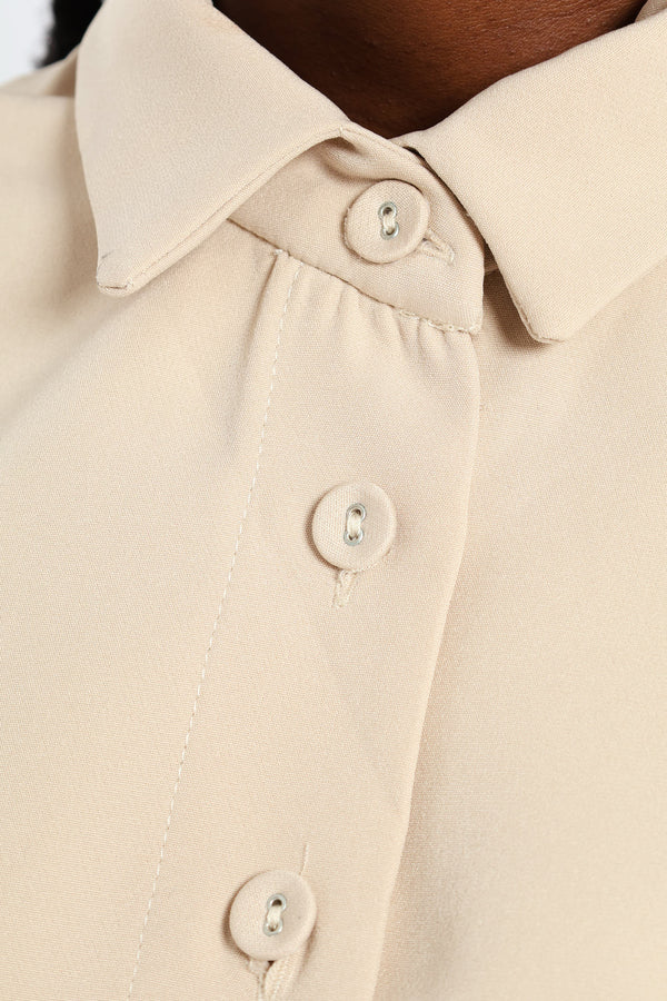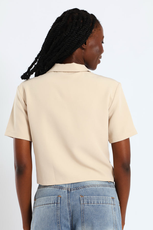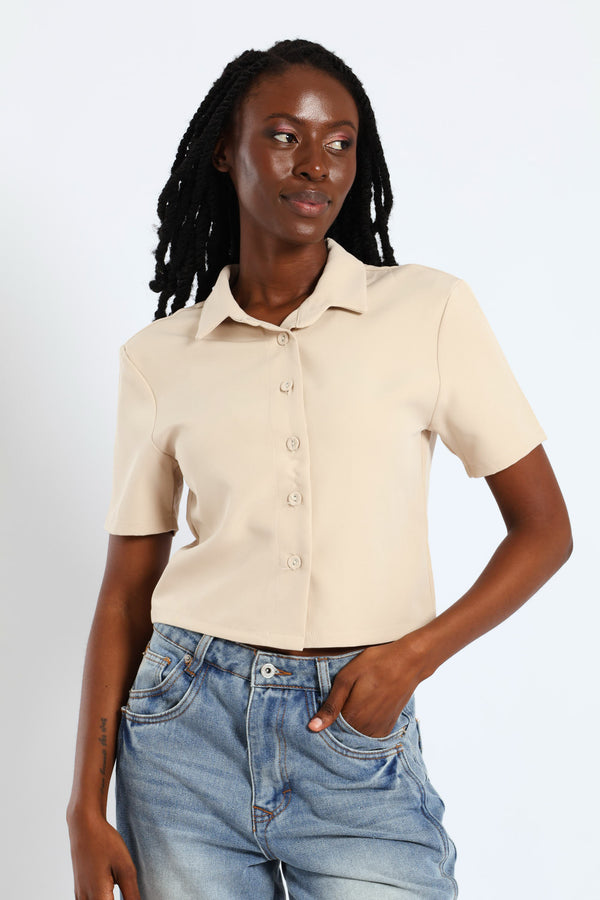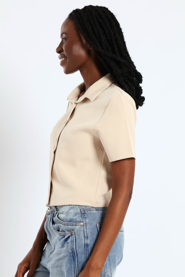 This short sleeve button-through shirt in a soft stone color is perfectly simple and cute. Its easy fit and classic buttons make it a playful addition to any casual outfit, bringing effortless charm and comfort wherever you go.