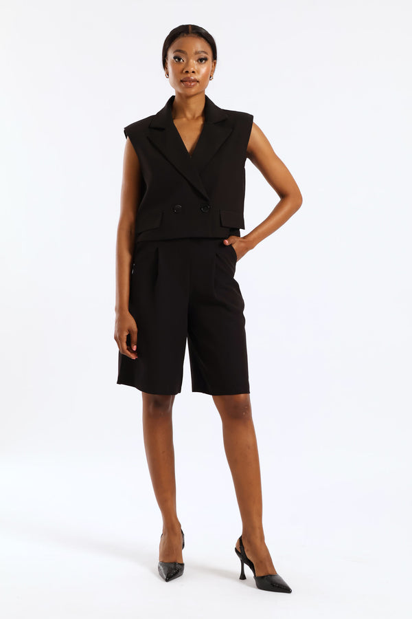 Add a dash of sass to your style with the Short Sleeve Cropped Blazer in sleek black. Its flirty cropped cut and short sleeves make it perfect for layering with a twist—dress it up or down for instant attitude and playful sophistication.