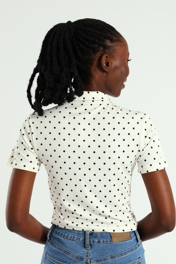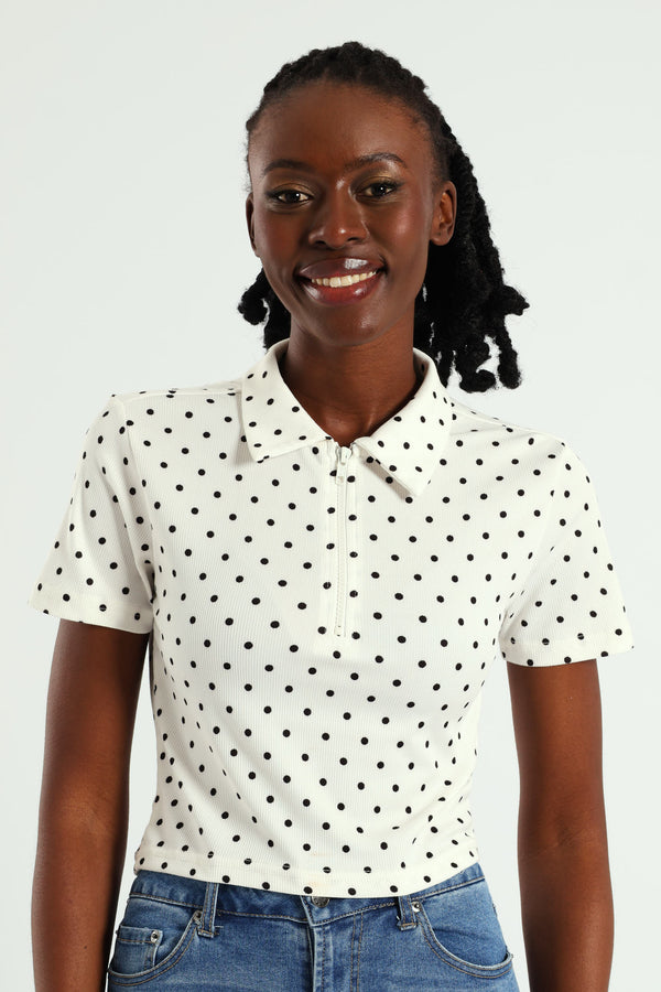Short Sleeve Polka Ribb Zipped Golfer - White/Black