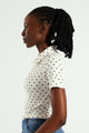 Elevate your casual wardrobe with the Short Sleeve Polka Ribb Zipped Golfer in classic white and black. Featuring a stylish polka dot ribbed texture and a convenient zippered neckline, this top combines comfort with a modern edge. Perfect for effortless day-to-day wear, it offers a flattering fit that moves with you, making it an essential piece for versatile, chic style.