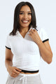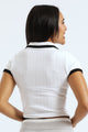 Refine your wardrobe with the Short Sleeve Seamless Cable Golfer in white. Crafted with seamless construction, this polo offers a smooth, comfortable fit that enhances ease of movement. The subtle cable knit detail adds texture and depth, elevating a classic silhouette. Perfect for a polished, sophisticated look whether on the green or in casual settings.