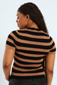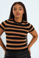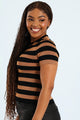 Short Sleeve Stripe Knitwear Top - Black/Brown