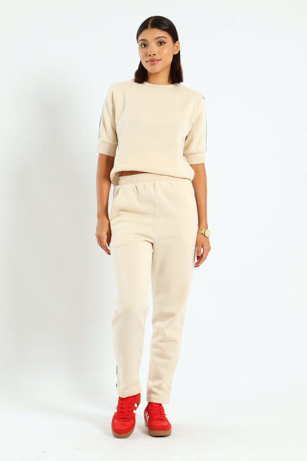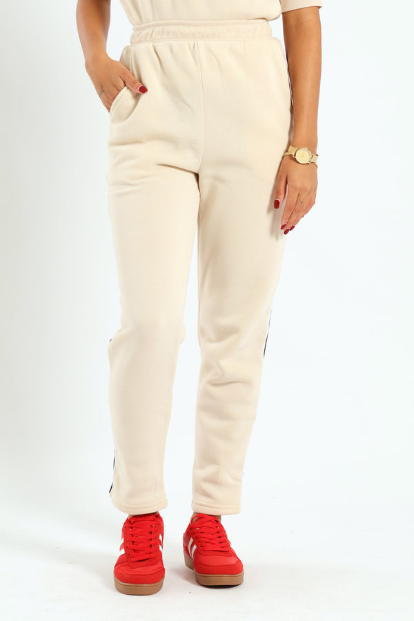Side Stripe Straight Leg Jogger - Cream