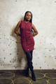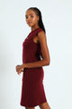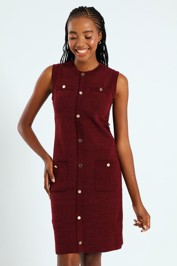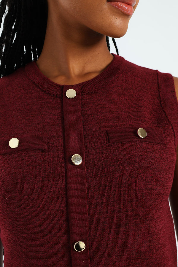 Sleeveless Button Down Knitwear Dress - Burgundy