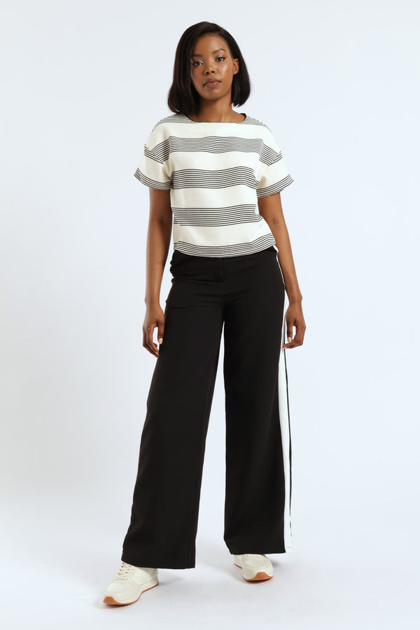 Brighten your day with this Stripe Tee featuring playful contrast piping at the neck. Its colorful stripes and quirky detailing make every outfit pop with fun energy. Soft and comfortable, it’s the perfect tee to keep your style fresh and spirited all day long.