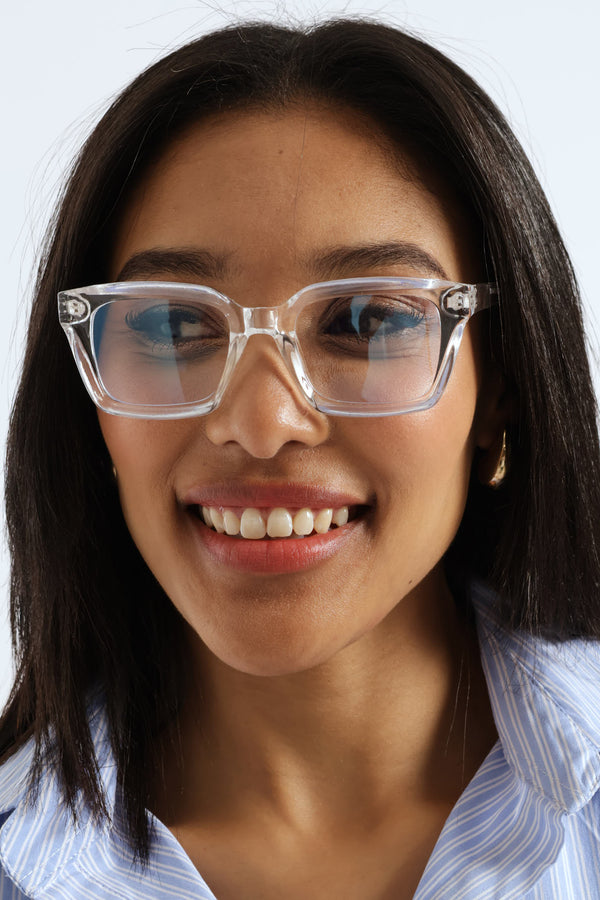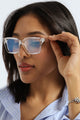 These Trending Blue Block Lens Sunglasses in Clear offer a refined blend of style and eye protection. Designed to filter harmful blue light, they help reduce eye strain during prolonged screen use. The transparent frames provide a sleek, modern look that complements any outfit, making them an elegant accessory for everyday wear.