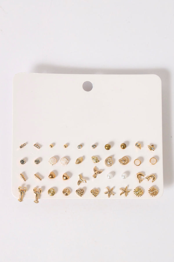 20 Pack Trendy Sea Inspo Stud Earrings - Multi