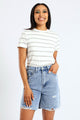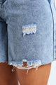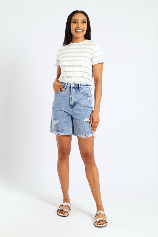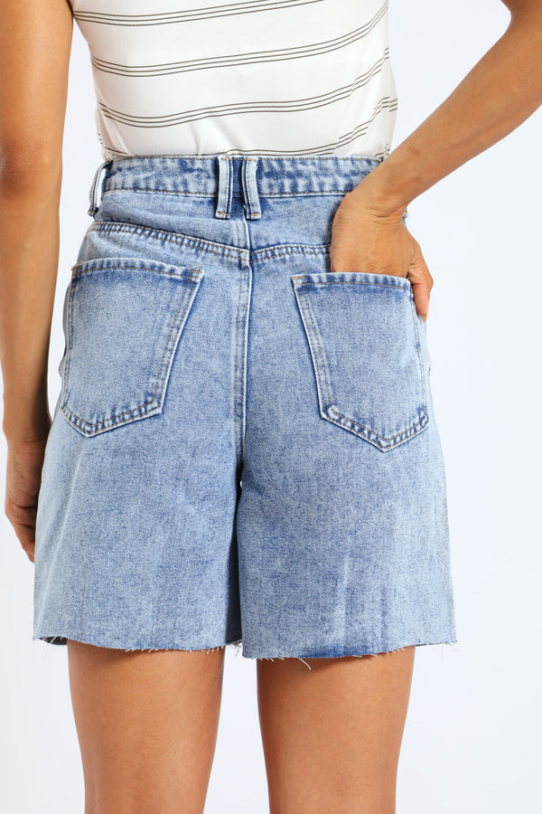 Abraised Denim Raw Hem Bermuda Shorts - Stonewash