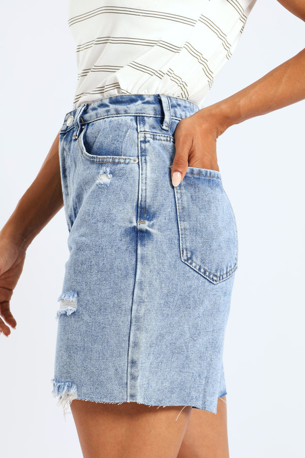 Step into effortless cool with these Abraised Denim Raw Hem Bermuda Shorts in Stonewash. Featuring a raw hem for that perfectly undone vibe, they’re as comfortable as they are stylish. Ideal for sunny adventures or casual days out, these shorts bring a laid-back edge to your wardrobe with every wear.