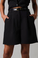 Belted Pleat Detail Shorts - Black