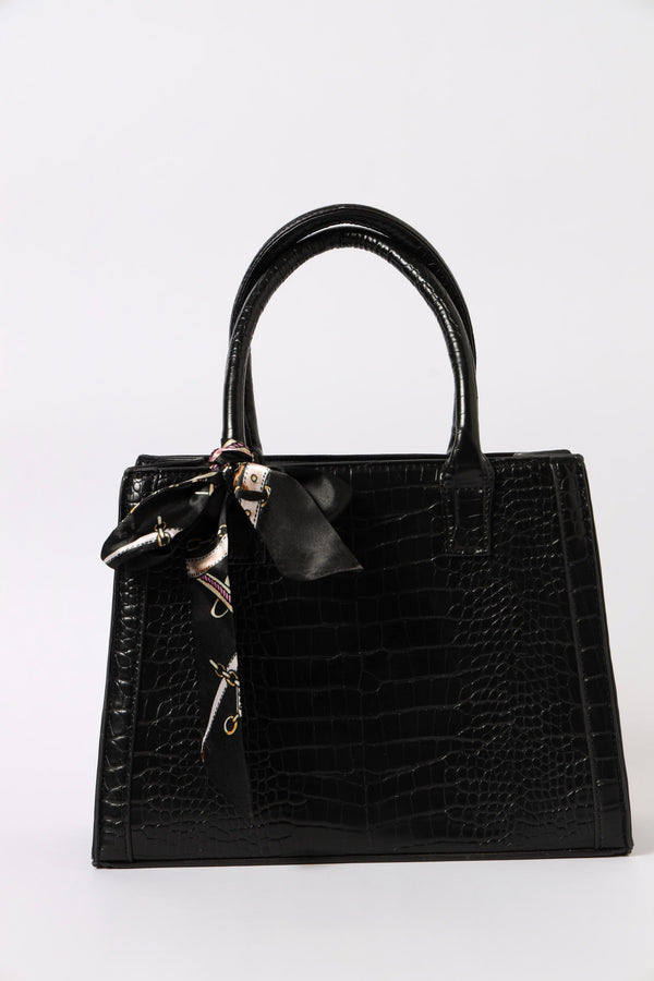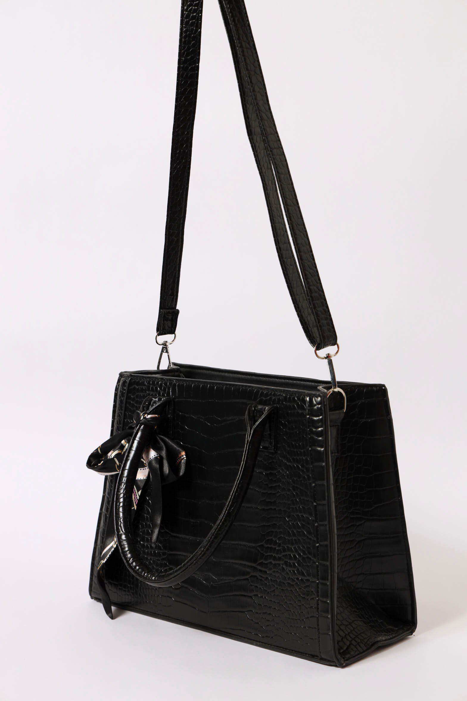 Elevate your everyday carry with this chic chain scarf tote—where sophistication meets fun. The striking black and silver palette brings instant polish to any outfit, while the decorative chain scarf detail adds a touch of glamour and personality. Spacious enough for your essentials, this versatile bag transitions seamlessly from office to weekend adventures. Perfect for those who refuse to choose between style and practicality.