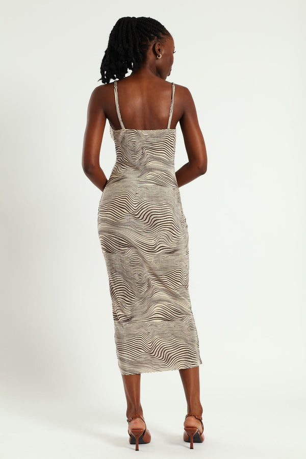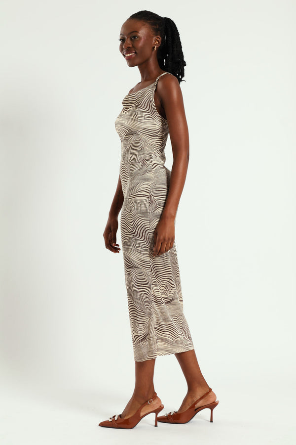 Cowl Neck Bodre Slip Maxi Dress - Multi