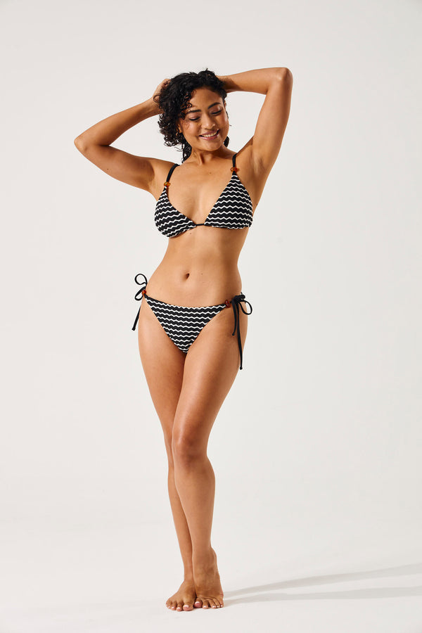 Get summer-ready with the Crochet Mesh Bikini Bottom in striking black and white. Detailed with delicate bead accents, this playful piece adds a touch of boho charm to your beach look. Pair it with the matching top for a coordinated, fun vibe that’s perfect for sun-soaked days and poolside lounging.