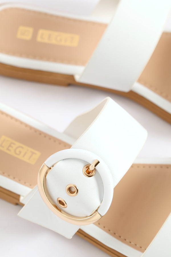 Add a splash of fun to your step with these Double Strap Two Colour Buckle Sandals in crisp white. Featuring contrasting buckle accents, they bring a quirky twist to your everyday look. Comfortable and stylish, these sandals are perfect for turning casual outings into mini adventures. Brighten your wardrobe and let your feet dance!