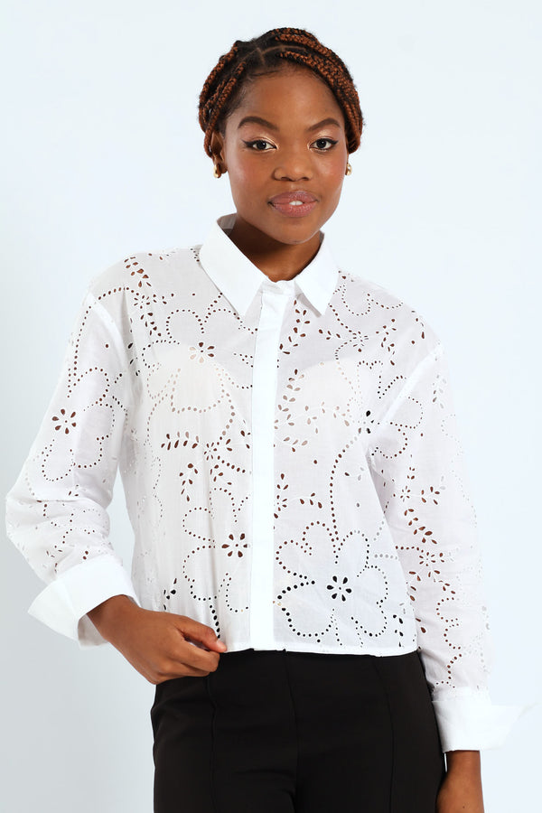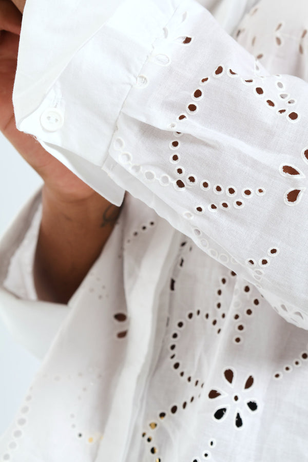 Indulge in the exquisite elegance of our Embroidered Look Long Sleeve Shirt in white. Crafted with intricate embroidery details, this shirt exudes sophistication and luxury. The long sleeves add a touch of refinement, making it perfect for any occasion. Elevate your style with this exclusive piece.